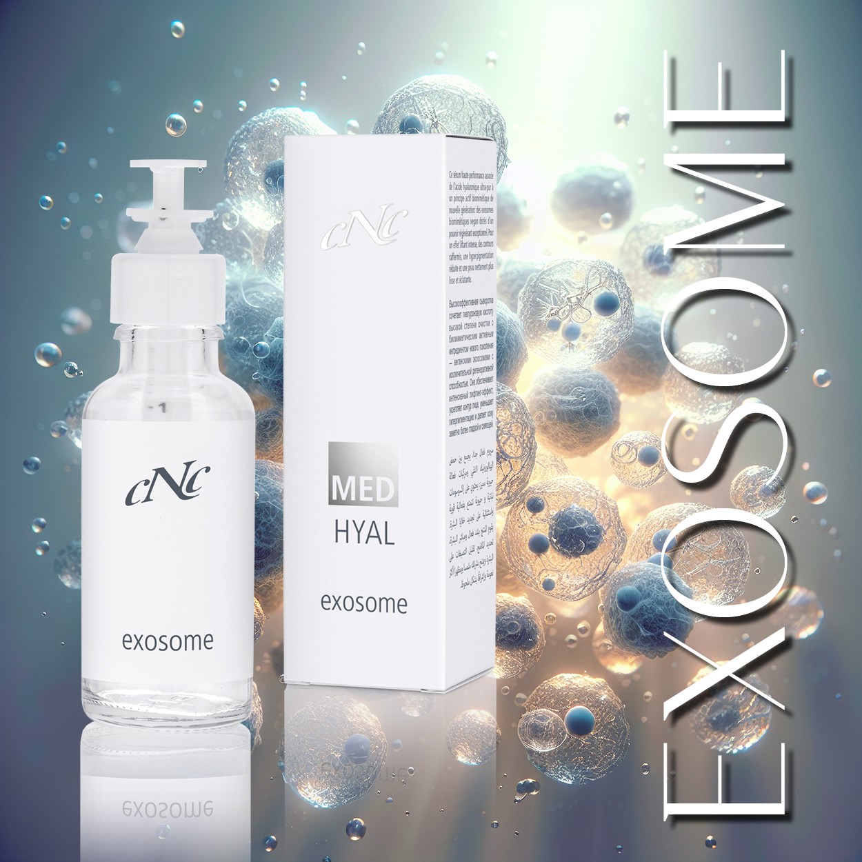 CNC eksosoomCNC Med Hyal eksosoomidega seerum põhineb revolutsioonilisel biomimeetilisel eksosoomtehnoloogial ja kõrgkvaliteetsel hüaluroonhappel.